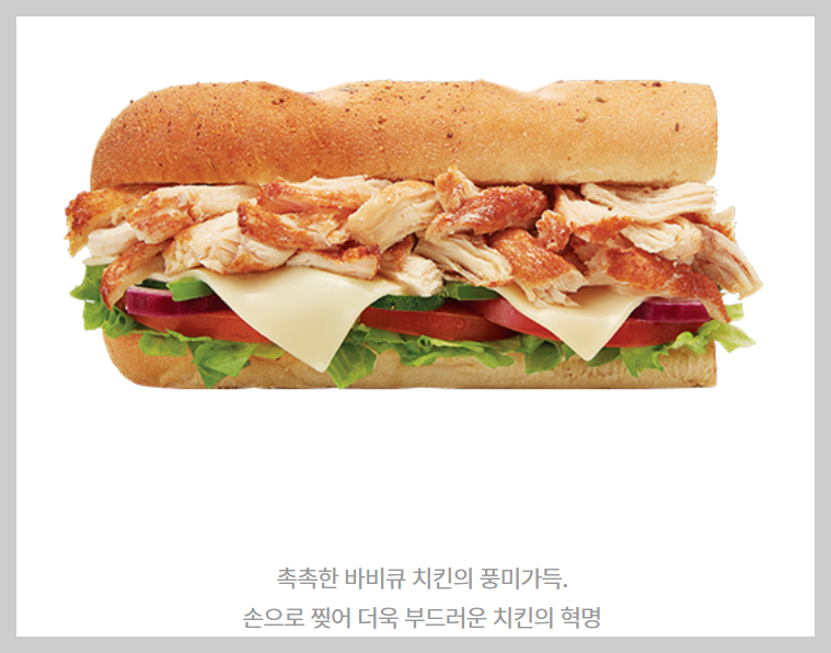 서브웨이 저칼로리 메뉴 추천 여섯 번째, 로티세리 바비큐 치킨입니다.